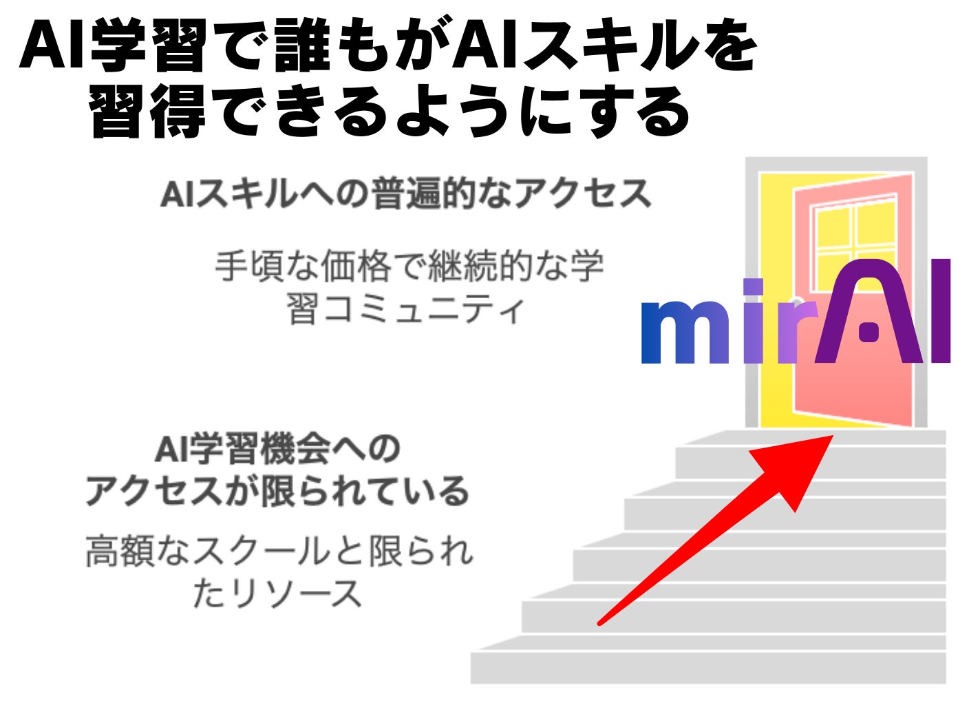 当社はこの課題を解決し、日本の生産性向上に直結する「AI学習の民主化」を実現するため、誰でも負担なく学び続けられるインフラとして『mirAI塾』を立ち上げました。