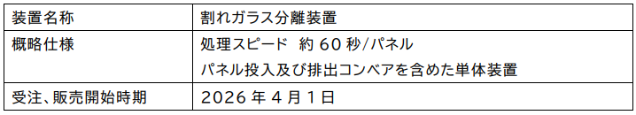 株式会社エヌ・ピー・シー(本社:東京都台東区、代表取締役社長:伊藤雅文、以下「当社」)は、2026年4月より、太陽光パネルリサイクル装置の新製品として「割れガラス分離装置」の提供を開始いたします。