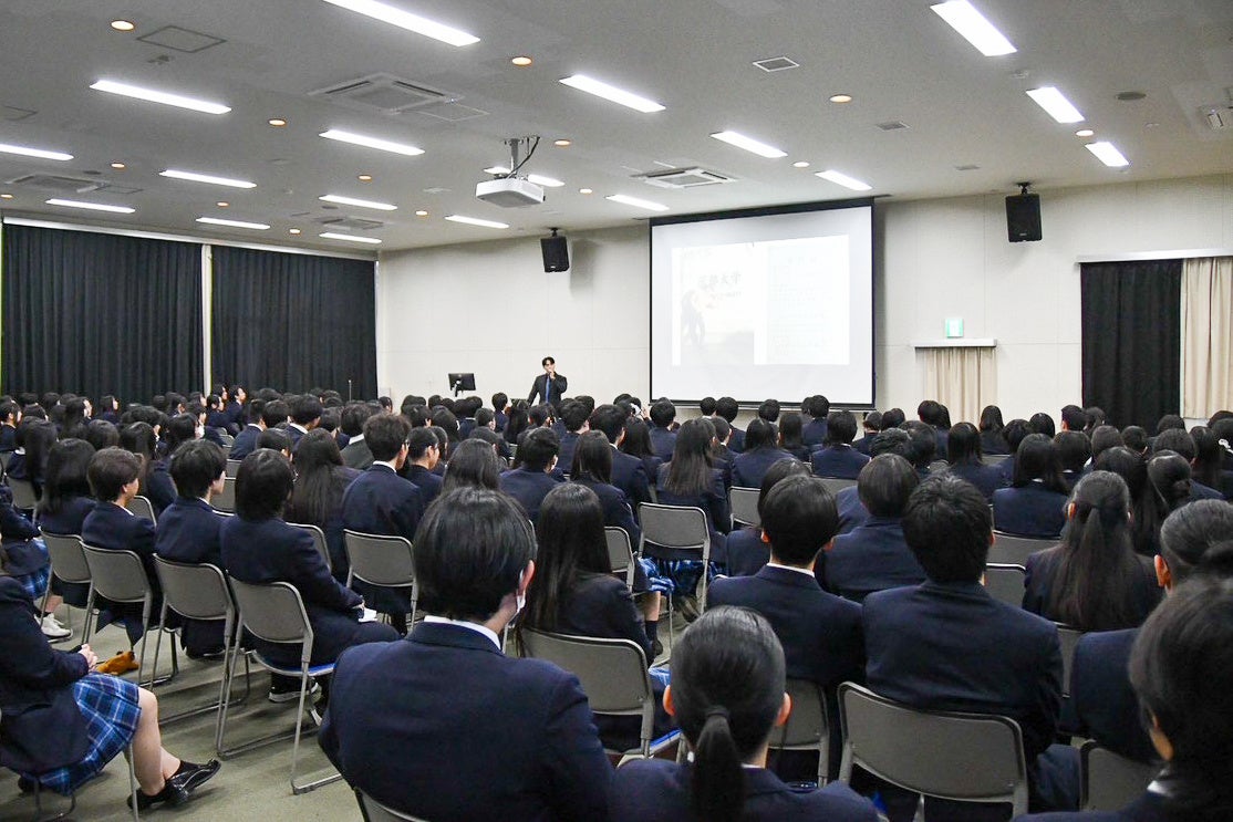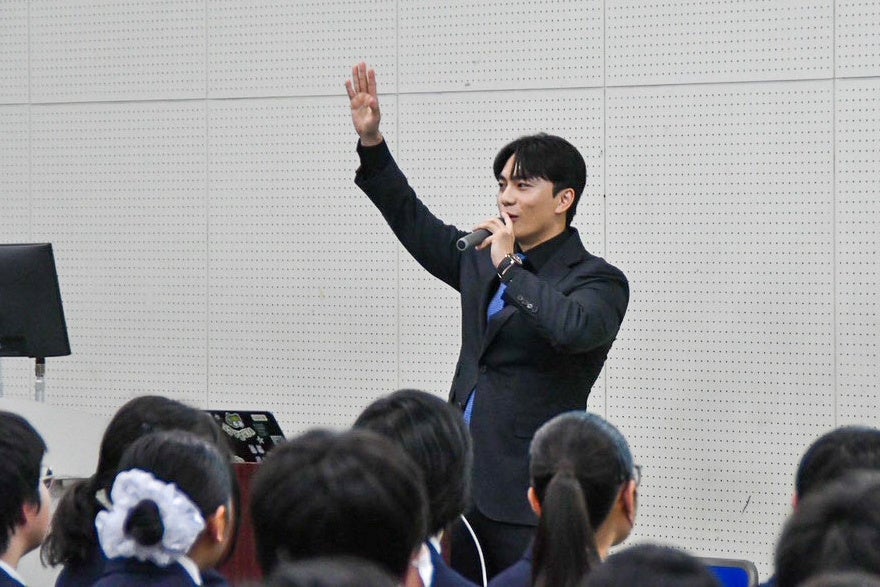 オンライン韓国語スクールK-PROを運営する株式会社アクセントエース(本社・東京都中央区)は2025年12月18日(木)、代表のスンジュンが東京都立葛飾総合高校にて、韓国への修学旅行を控えた生徒200人を対象に韓国語と韓国文化の理解を深める特別講義を行いました。