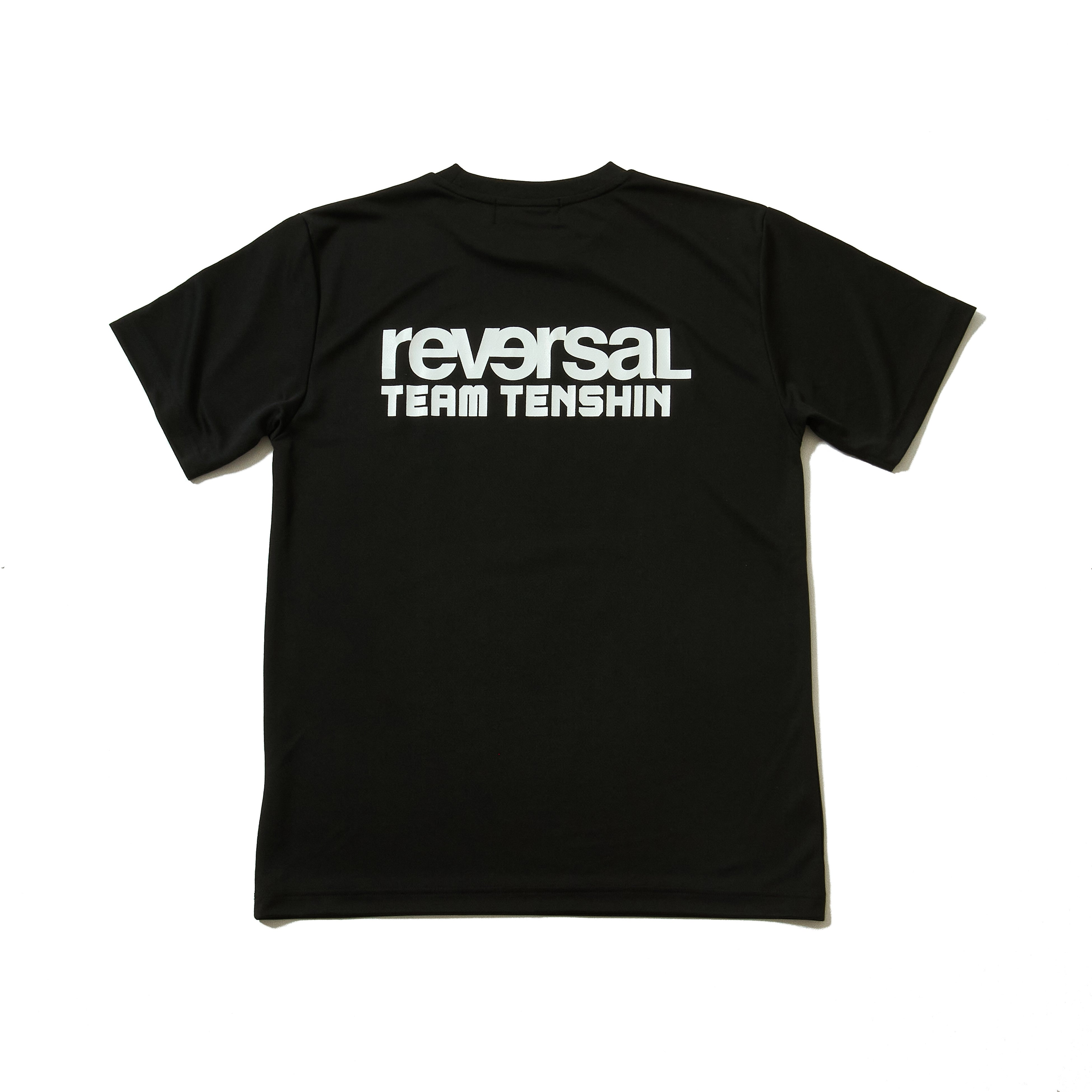 那須川選手リングイン時のフォトを大胆に落とし込んだ一枚。背面には、コラボアイテムであることを示す「reversal」と「TEAM TENSHIN」の文字がプリントされています。