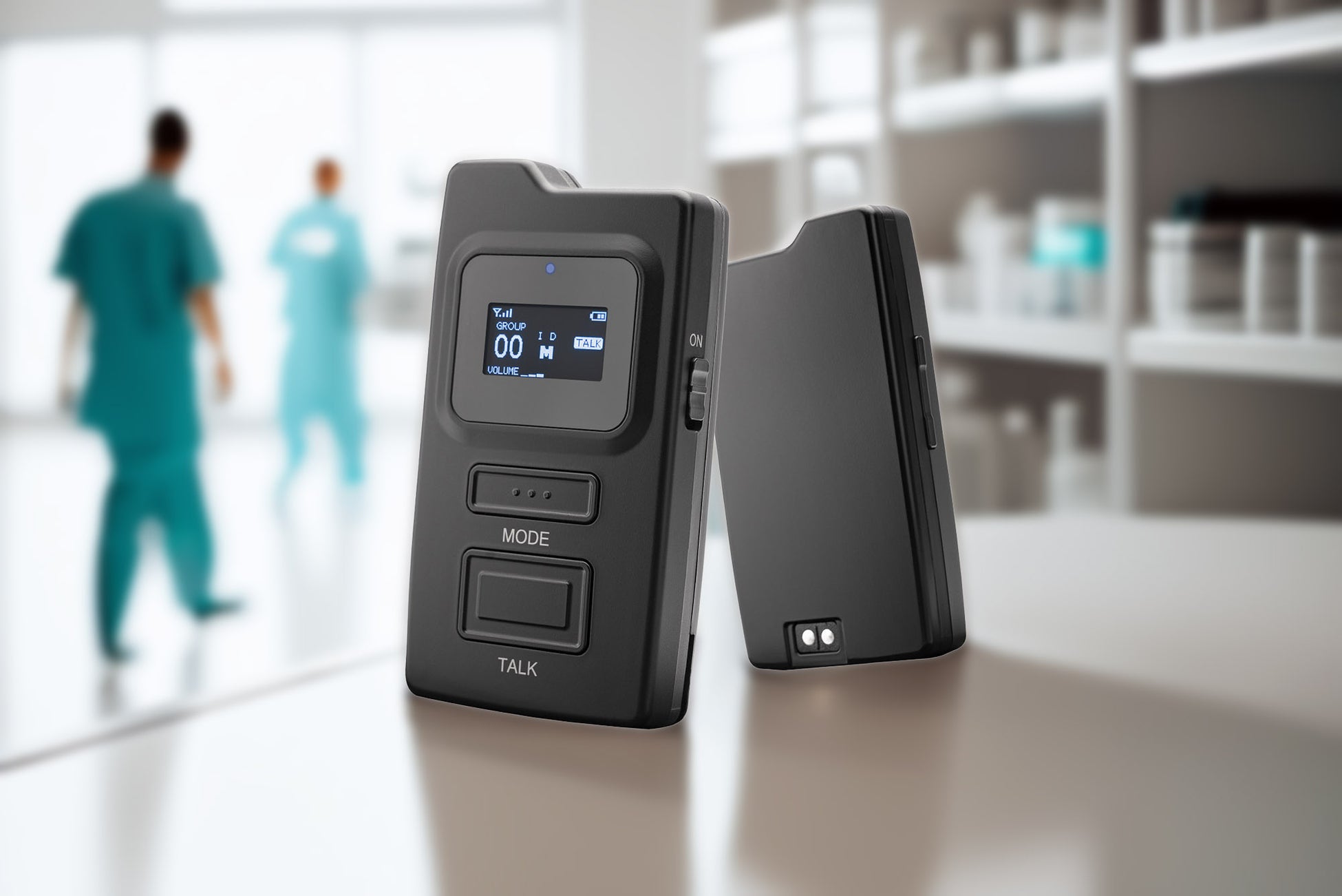 ハンズフリーで、移動・案内・作業を止めずにコミュニケーションできます。