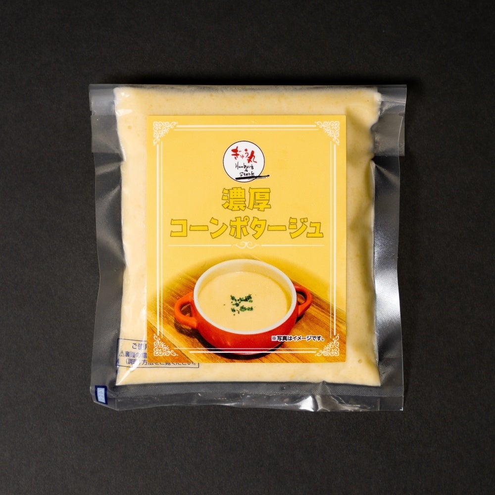 特徴:定番ハンバーグはもちろん、濃厚コーンポタージュ、スイートポテトまで 入ったぎゅう丸フルコースギフト