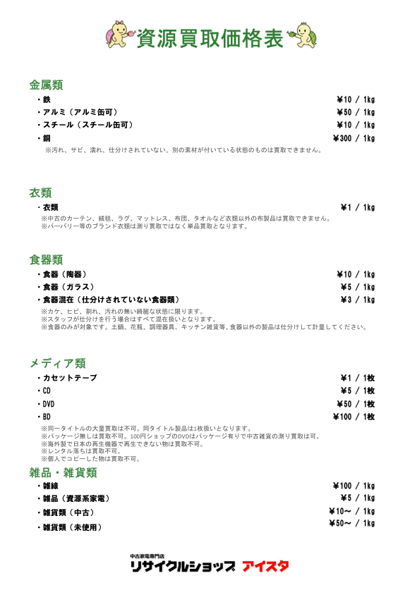 富士見市鶴瀬店では、通常のリサイクルショップでは買取対象になりにくい品目も、資源として1kg単位で買取いたします。