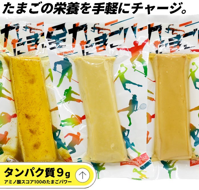 「全力たまごバー」は、面倒な殻を剥く手間がなく、片手で手軽にたまごの栄養をまるごと取ることができます。また、タンパク質が1本あたり9g以上あり、手軽なタンパク質の補給にピッタリです。