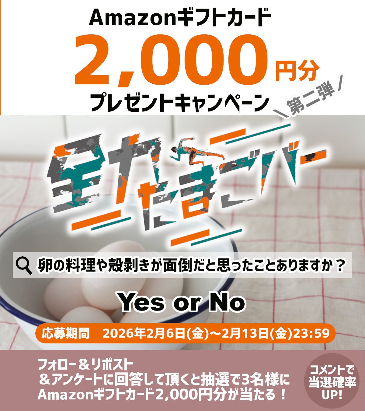 2026年2月6日(金)~2月13日(金)に公式X(https://x.com/tama_g06?s=11&t=t-9Q8Uzt6XfbMsF7X6S6Ug)にて「卵の料理や殻剥き、面倒だと思ったことはありますか?」とアンケート調査を実施しました。