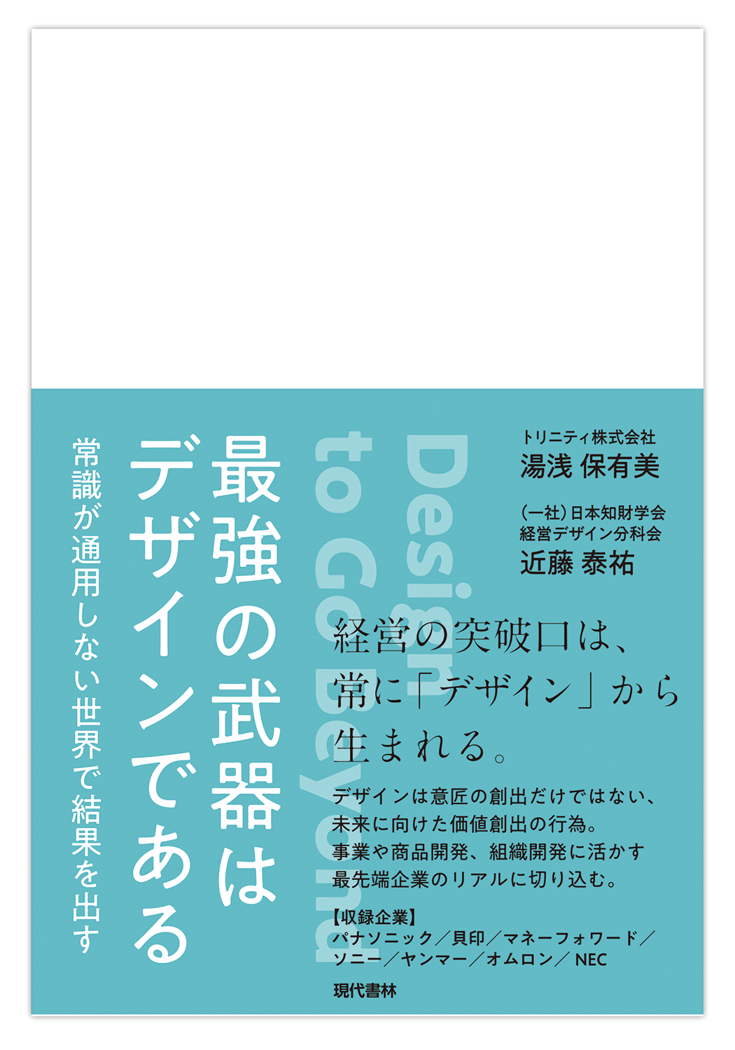 "広義のデザイン"コンサルティングファーム トリニティ(株)CEO湯浅保有美と経営デザインシート普及を推進する近藤泰祐氏初の共著。価値創出の仕組みや企業実例を通しデザインの効能を語る