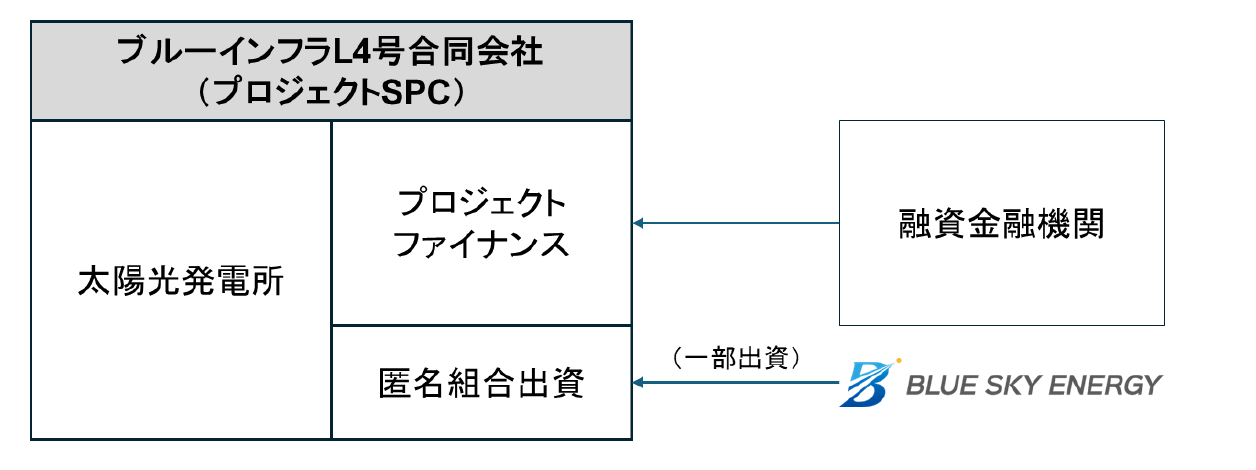 本ファンドは、太陽光発電所を取得する特別目的会社(SPC)であるブルーインフラL4号合同会社に対する融資金融機関によるノンリコース型のプロジェクトファイナンス及び匿名組合出資による資金供給により組成されており、全国に点在する計12.4MW規模(DC)のバルク型太陽光発電事業を行うものです。取得対象の6物件は全て稼働済太陽光発電所であり、うち5物件はリパワリング(設備更新)を実施済みで、発電効率と稼働安定性の向上が期待され、長期的な運営を想定しております。