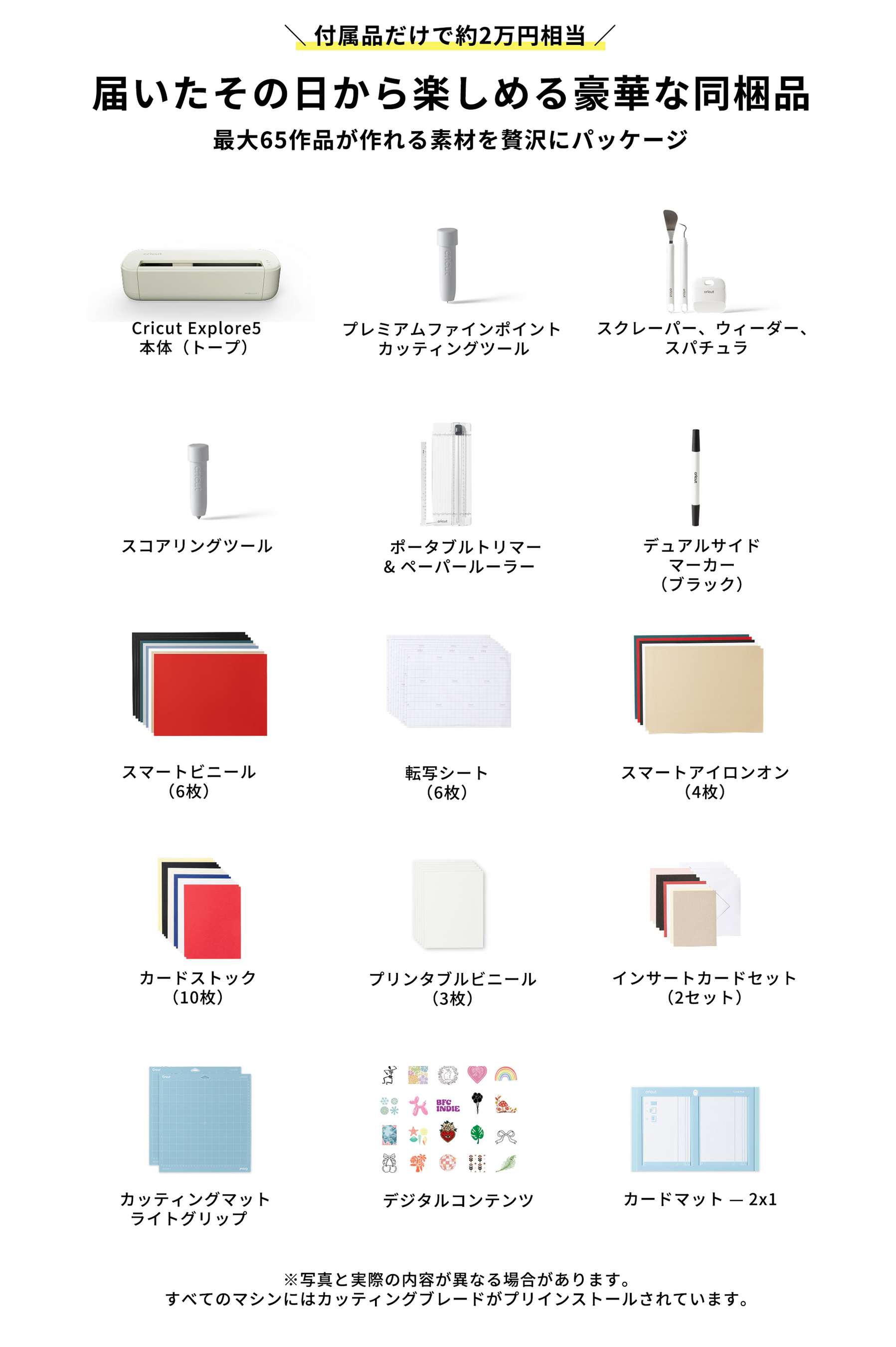 人気の基本ツールに加え、フルカラー作品が作れる「プリンタブルビニール」や「カードセット」など約20,000円相当分を贅沢にパッケージ。