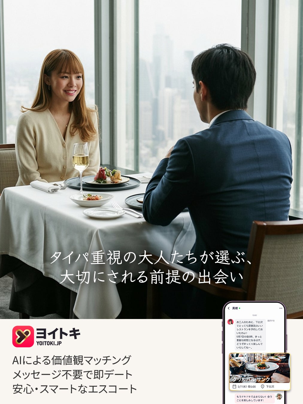 Yoitoki (ヨイトキ)は、長期間のメッセージ交換を前提としたマッチング アプリではありません。