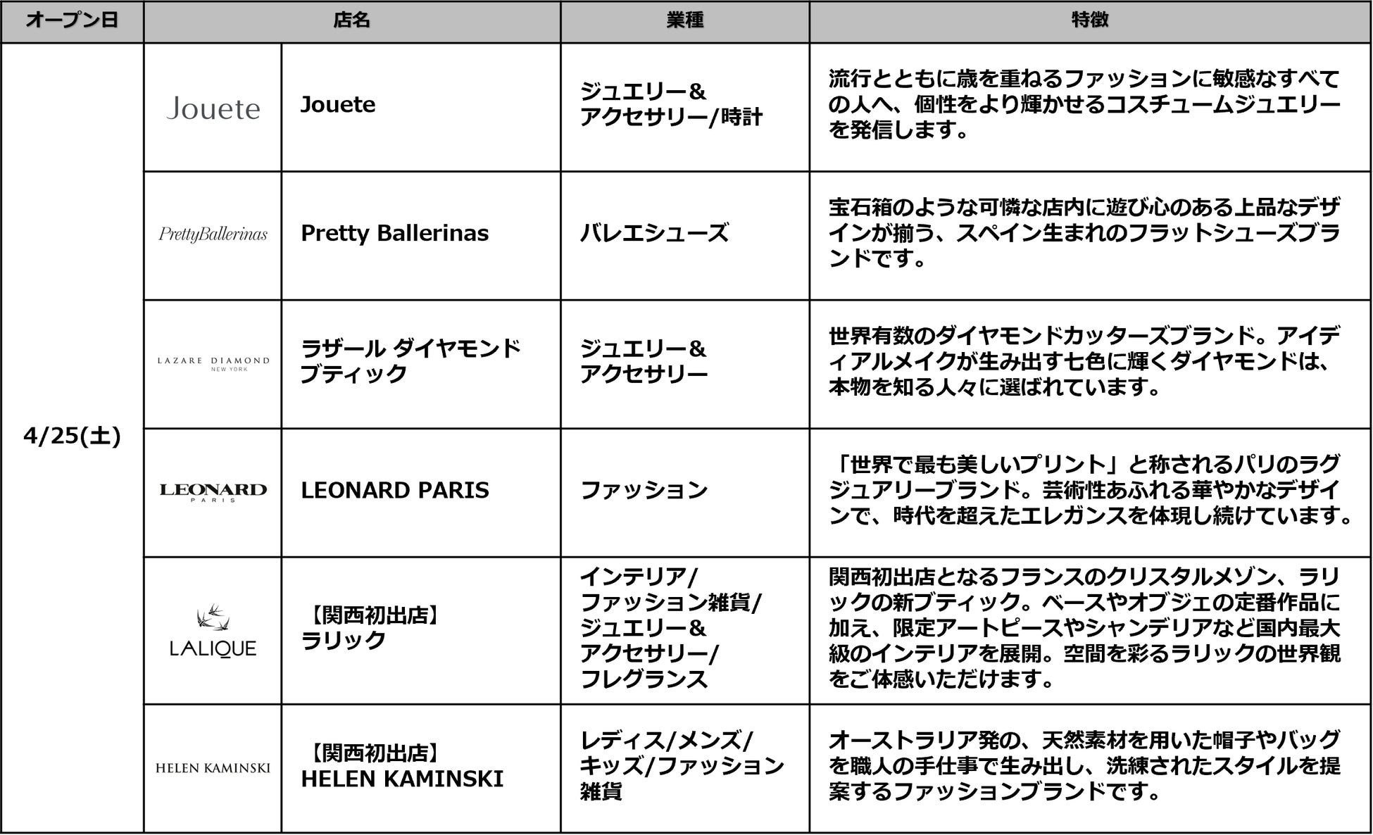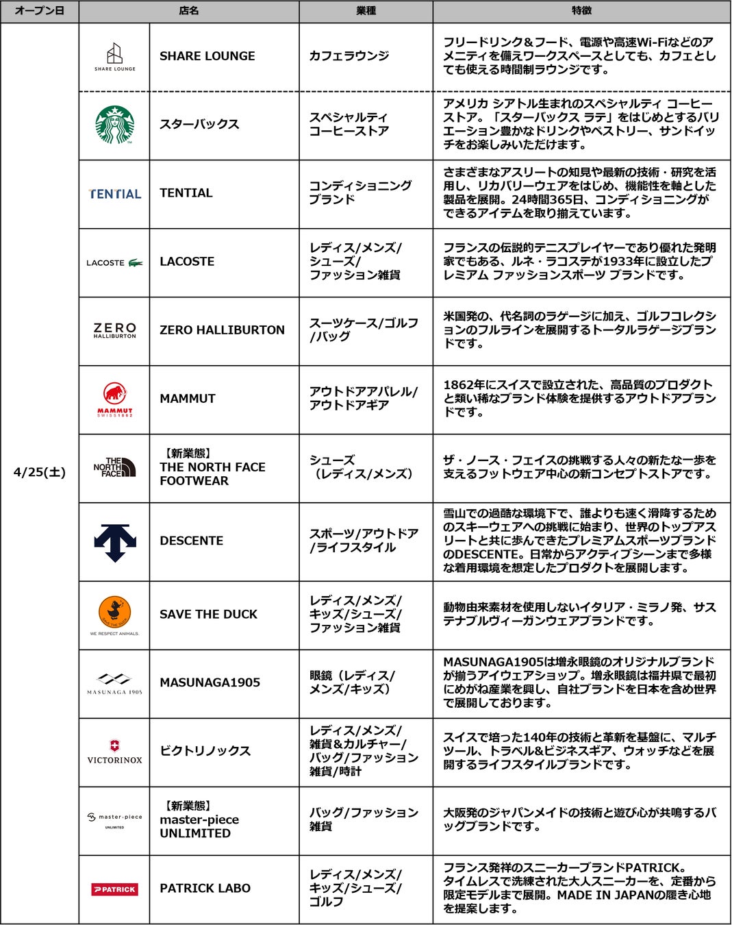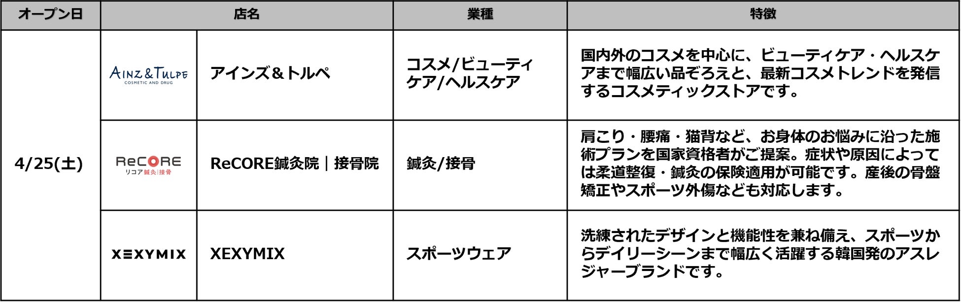 ・開業日 :2026年4月25日(土)/38店舗