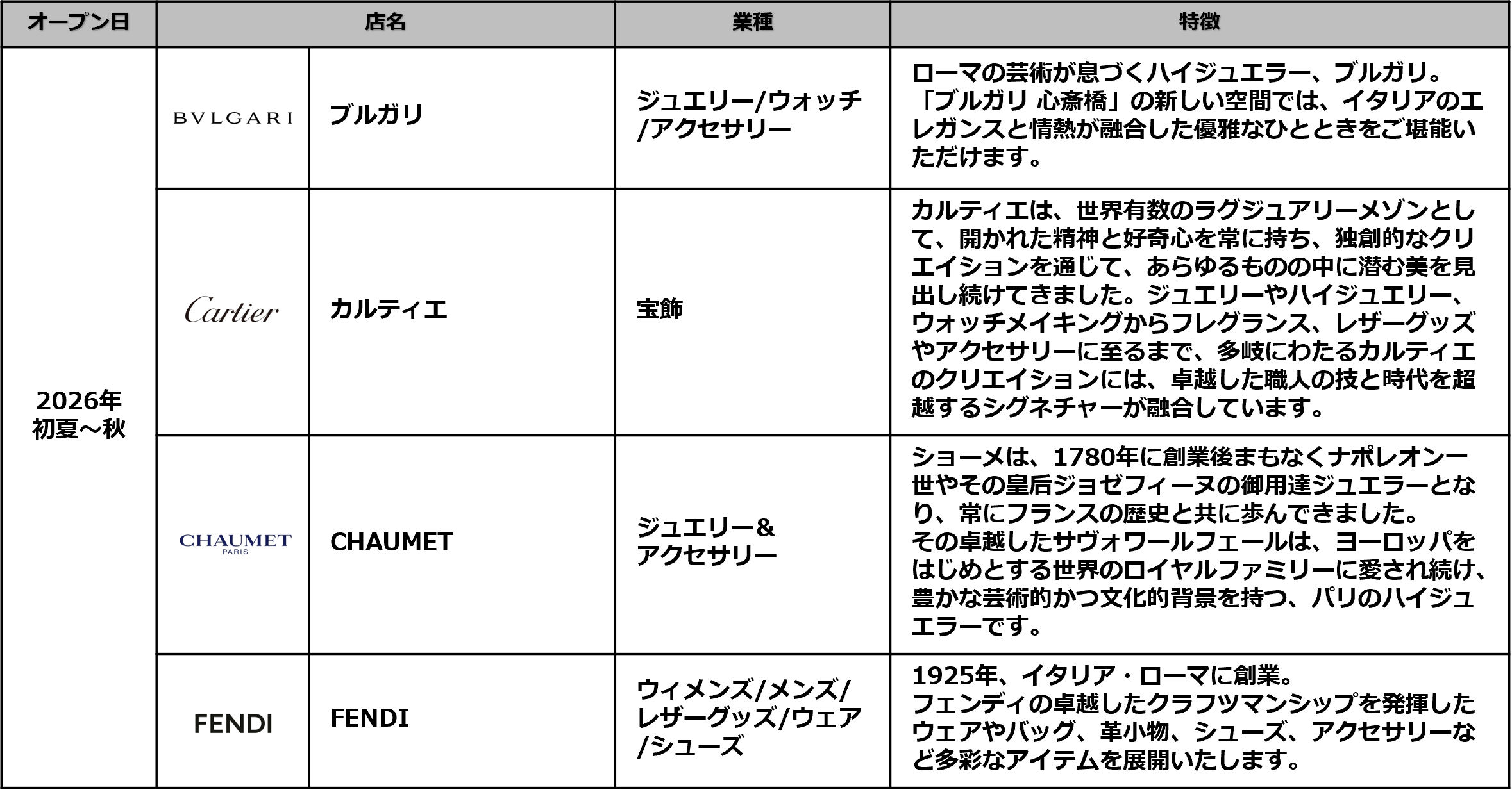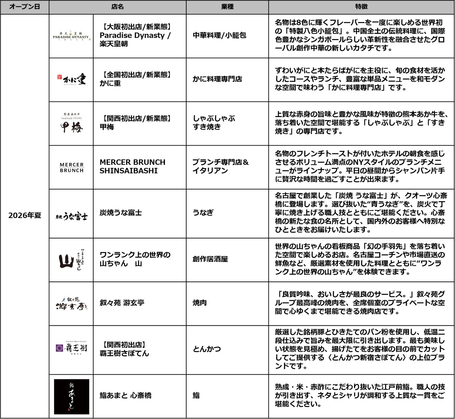 2026年夏/10店舗、2026年初夏~秋/4店舗