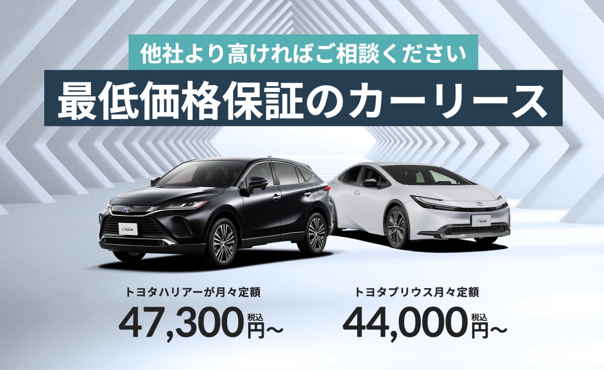 新車リースクルカは、頭金0円、ボーナス払い0円、車検、自動車税不要の月々定額でご利用いただける、 最低価格保証のカーリース(サブスクリプション)サービスです。