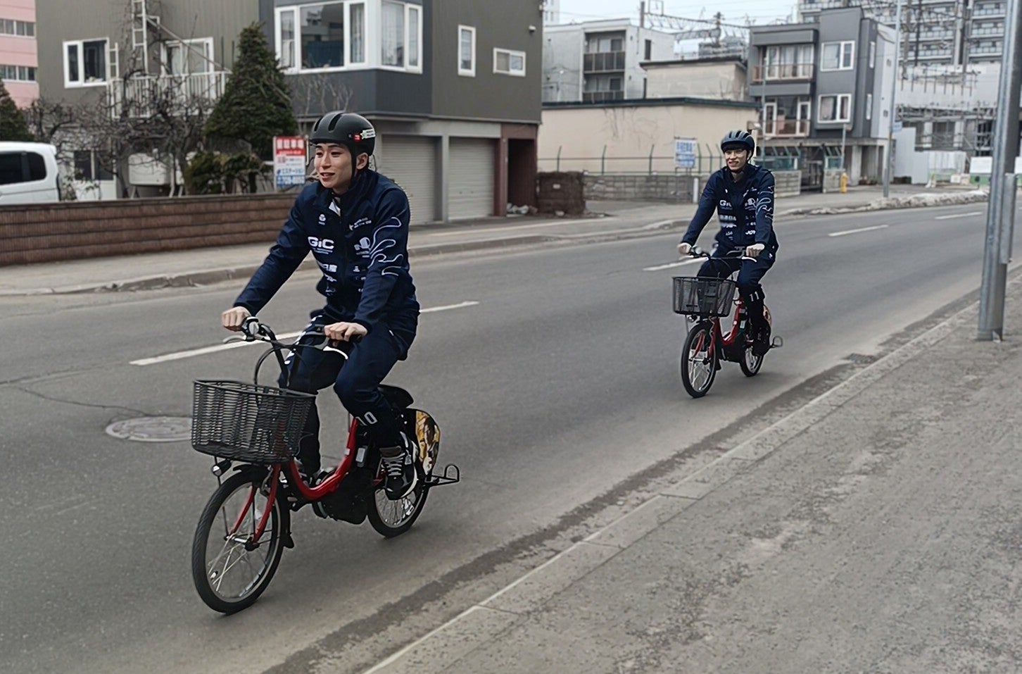 ご自身の写真が掲出された車両で北ガスアリーナ札幌46の周りを試走し、札幌の春の風を感じながら、電動アシスト付き自転車の快適さを体感していただきました。
