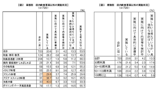 店内飲食事業以外の実施状況を聞いたところ、「実施している」は20.6%となりました。