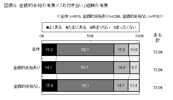 ~大学生の73.9%が渋々お金を払う“オツキアイ消費”を経験(図表G)。典型例はサークル等の「大人数飲み会」~