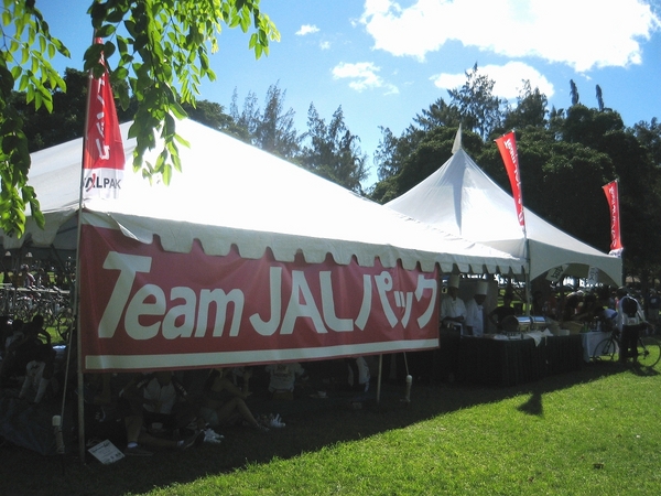 また、フィニッシュ地点では「Team JALパック」ライダースステーションを設置し、走り疲れた皆さまを冷たいお飲物やフルーツスライス、アイスキャンディ、大好評のカレーライスをご用意してお迎えします。ゆっくりおくつろぎいただけるスペースを確保しておりますのでお待ち合わせにも是非ご利用ください。