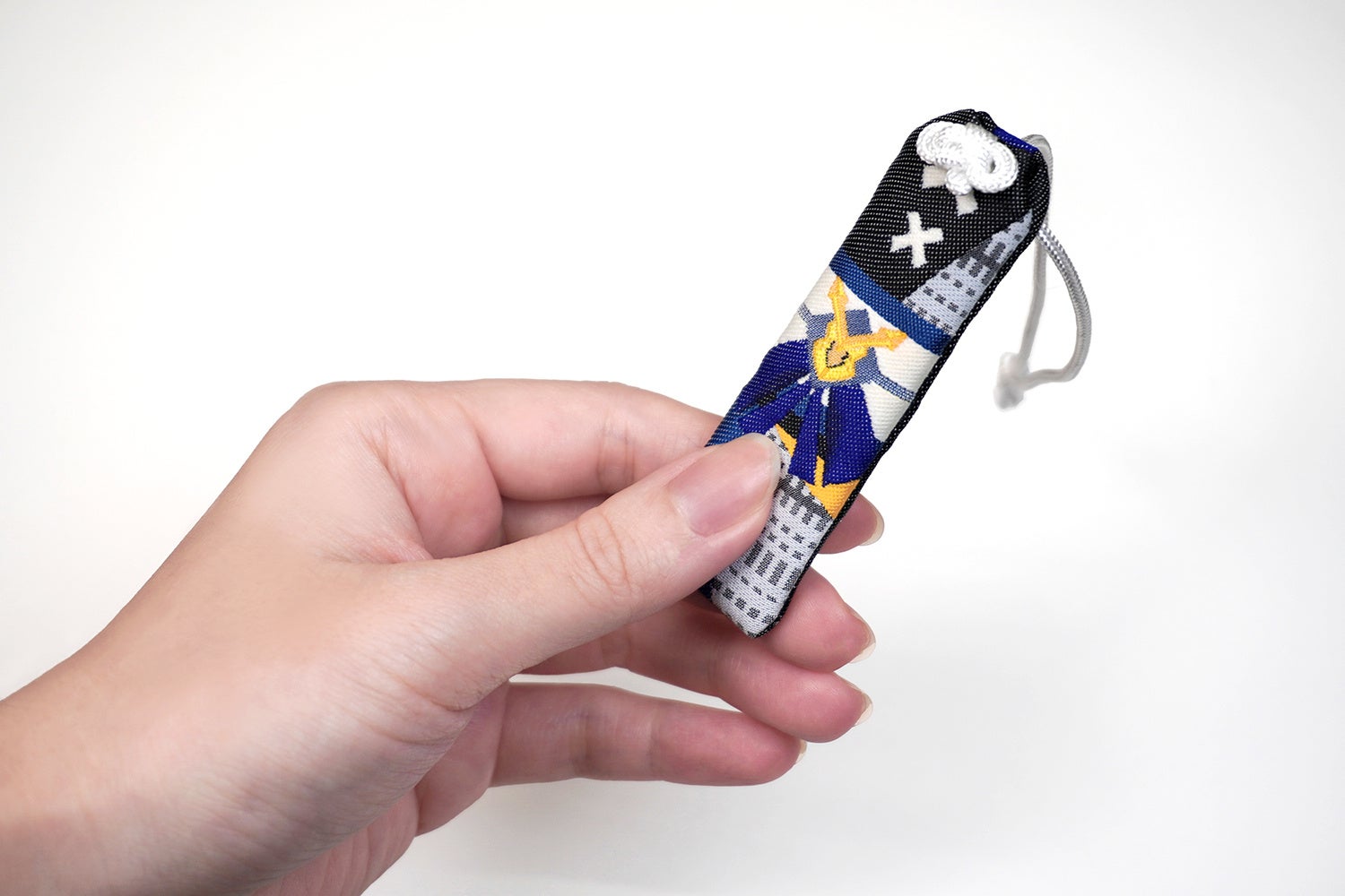 鮮やかな糸で織られた本格的なお守りとなっており、鍵などに取り付けやすい細身で可愛らしいサイズ感です。