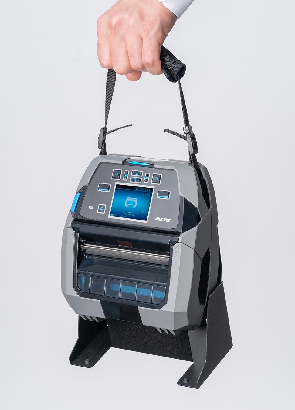 そこで、「卓上型プリンタ並みの発行スピードと印字性能を両立した携帯型プリンタ」をめざし、PW4NXを開発しました。最大152㎜/秒(クラス最速)、かつバッテリーが無くなる最後の1枚まで濃い印字が特長です。IP54 規格準拠の防じん・防滴仕様で、雨風が吹き込む環境下や屋外の業務にも対応。耐落下衝撃性2.14m※5の頑丈設計で、フォークリフトやピッキングカート上で発行する場合の落下にも備えました。また、持ち運び用の「ストラップ」、フォークリフト等から電源を供給するための「DCアダプター」など、機動的な運用に応えるオプションも販売します。さらに、IoTによる予防保守機能※6を標準搭載、予期せぬ故障などによる停止時間の削減を図ります。