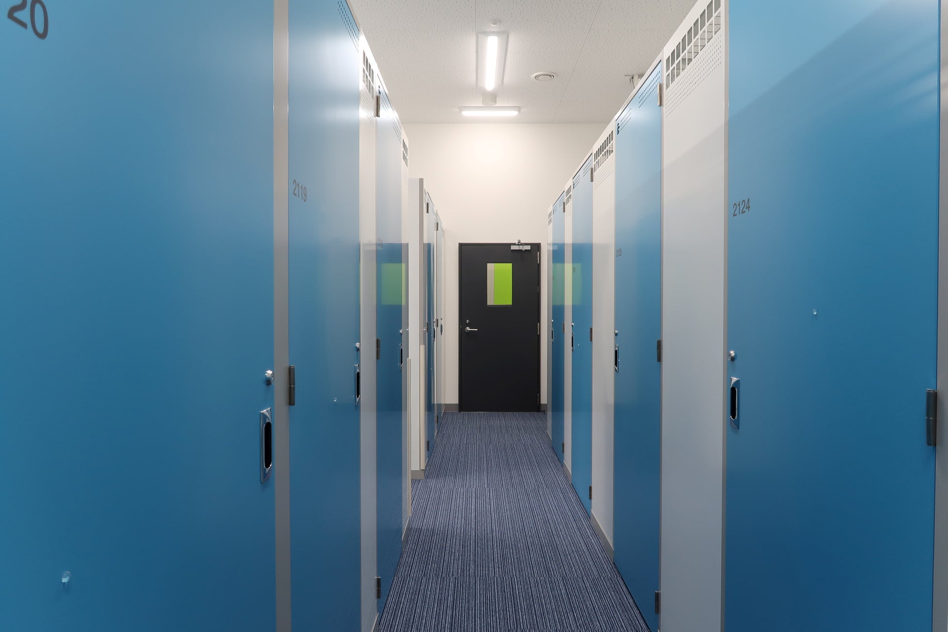 専用駐車場もあり、24時間いつでもご利用いただけます。ひとりでも安心してご利用しやすいよう、警備会社との連携や、館内デザイン・BGMなど室内環境にもこだわった施設です。収納室に装備されている可動棚は、耐荷重や堅牢さを保ちながらも、女性でも扱いやすい軽さを追求しています。