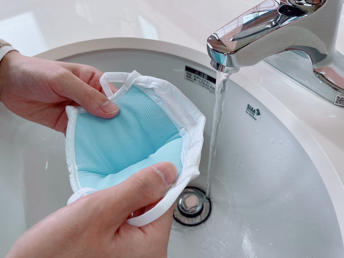 形状記憶ワイヤーによって100回洗ってもマスクの形が崩れにくく、使用開始時のフィット感が長く続きます。