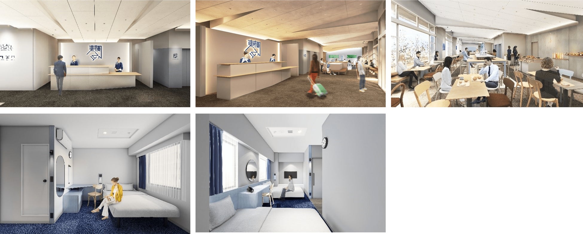 このたび「羽田空港Ⅱ」のリニューアルデザインを、建築家の梅澤竜也氏に依頼し、<基地ホテル>と東横INNらしさを表現しました。