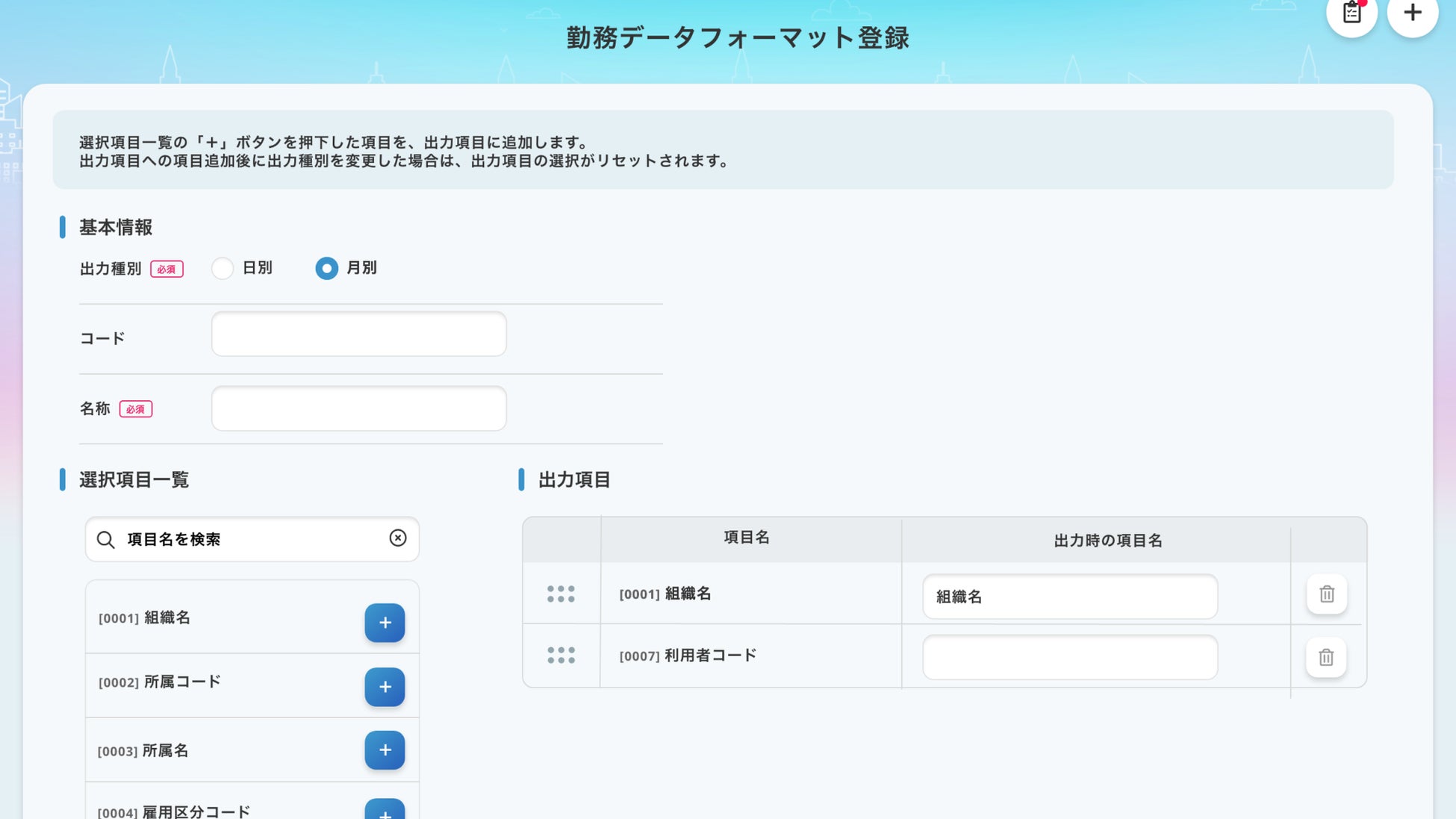 本機能を使用することでボタン1発で給与計算ソフトへインポート可能なCSVを出力でき、勤怠データの取り込みが大変楽になります。