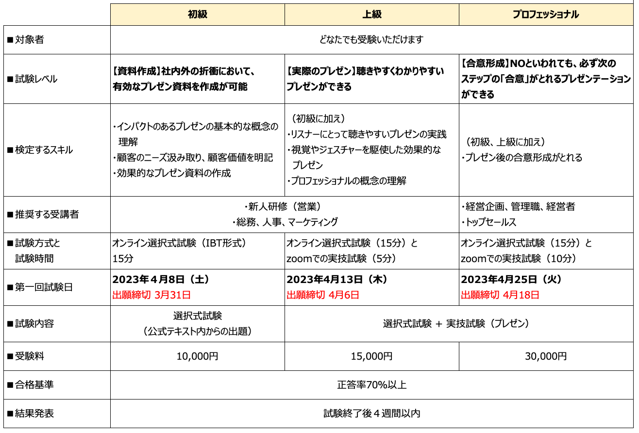 ビジネスプレゼン検定試験概要
