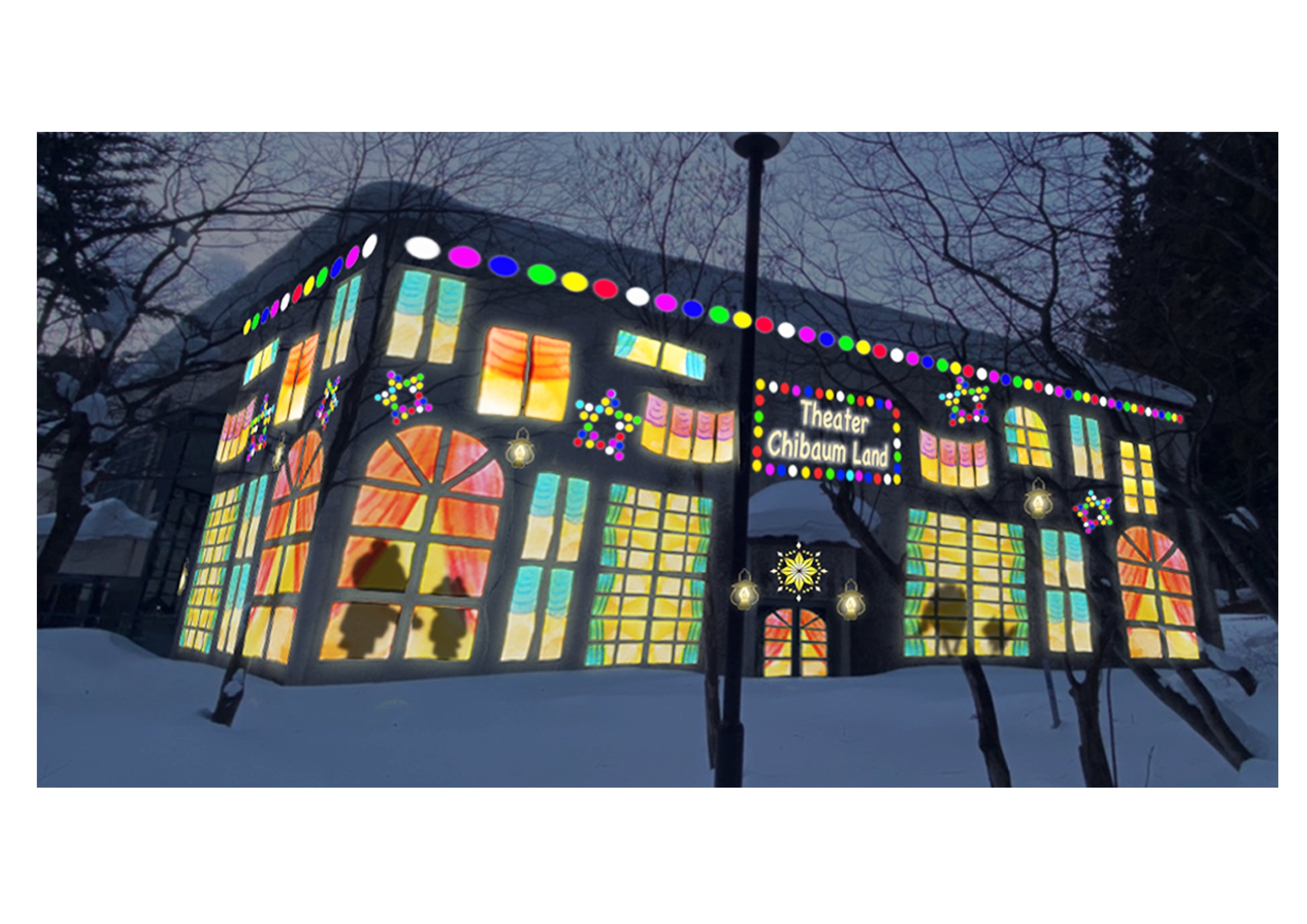 光の切り絵作家「酒井敦美」による幻灯空間をはじめとするオリジナル映像作品群に地域に棲む動物たちの声や⽔の⾳、⾵の⾳などを取りいれた⾳楽を作曲家でミュージカルソー奏者「サキタハヂメ」が特別に制作した自然に調和した厳冬空間、光の切り絵と音楽のナイトウォークイベントを開催いたします。