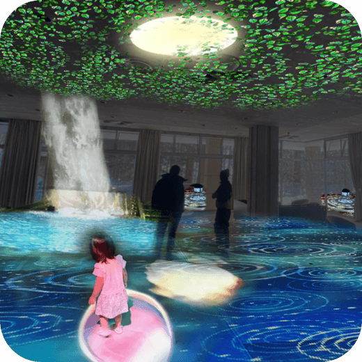 の様々な空間に光の切り絵を投影し変化に富んだ多彩な世界に染め上げる。