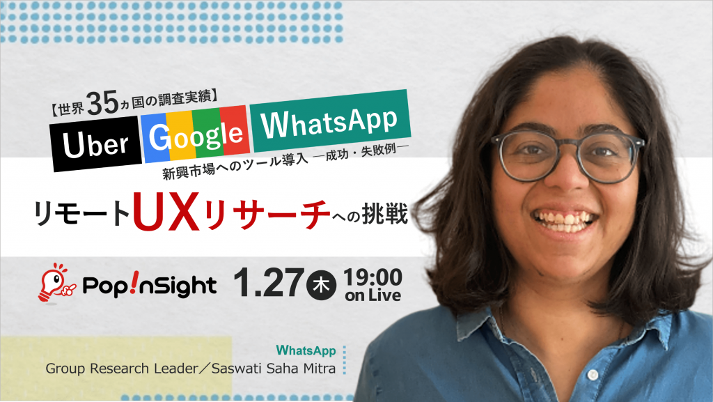 【1月27日(木)無料ウェビナー】Uber/Google/WhatsApp世界35か国の調査実績:リモートUXリサーチへの挑戦ー新興市場へのツール導入 成功・失敗例ー
