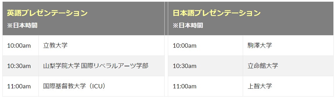 主催するライトハウスは、アメリカで日本語の生活情報誌を発行するなかで、生活に欠かせない情報のひとつとして教育を位置づけています。海外育ち、バイリンガルなどの特徴をもつ学生と、グローバル化に意欲的な日本の大学とが出会える場として「日本の大学 進学フェア」を継続的に開催しています。同フェアは2017年の初回開催から、のべ1万4千人の方が視聴・参加されています。海外に住む学生が受験・就学しやすい制度を設けている、国際化に意欲的な大学が毎回参加しています。