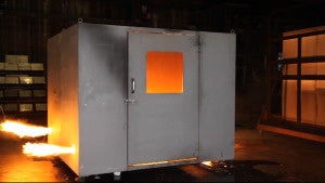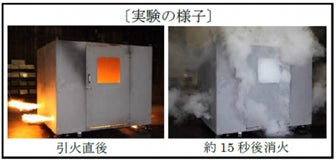 実験内容:K/SMOKE PANEL(薬剤量4.3kg)を設置したコンテナに、ガソリン1,000㎖を散布し引火