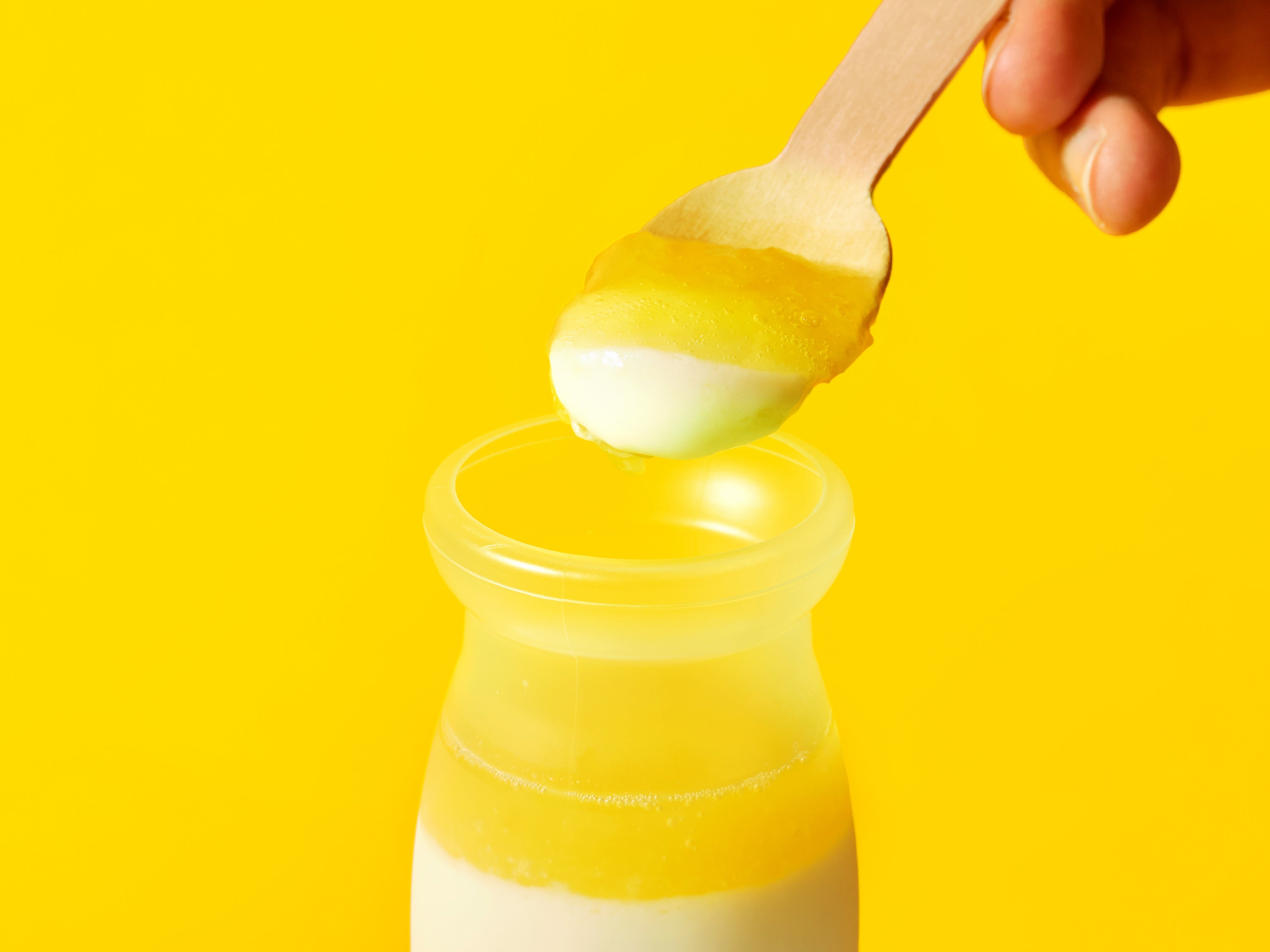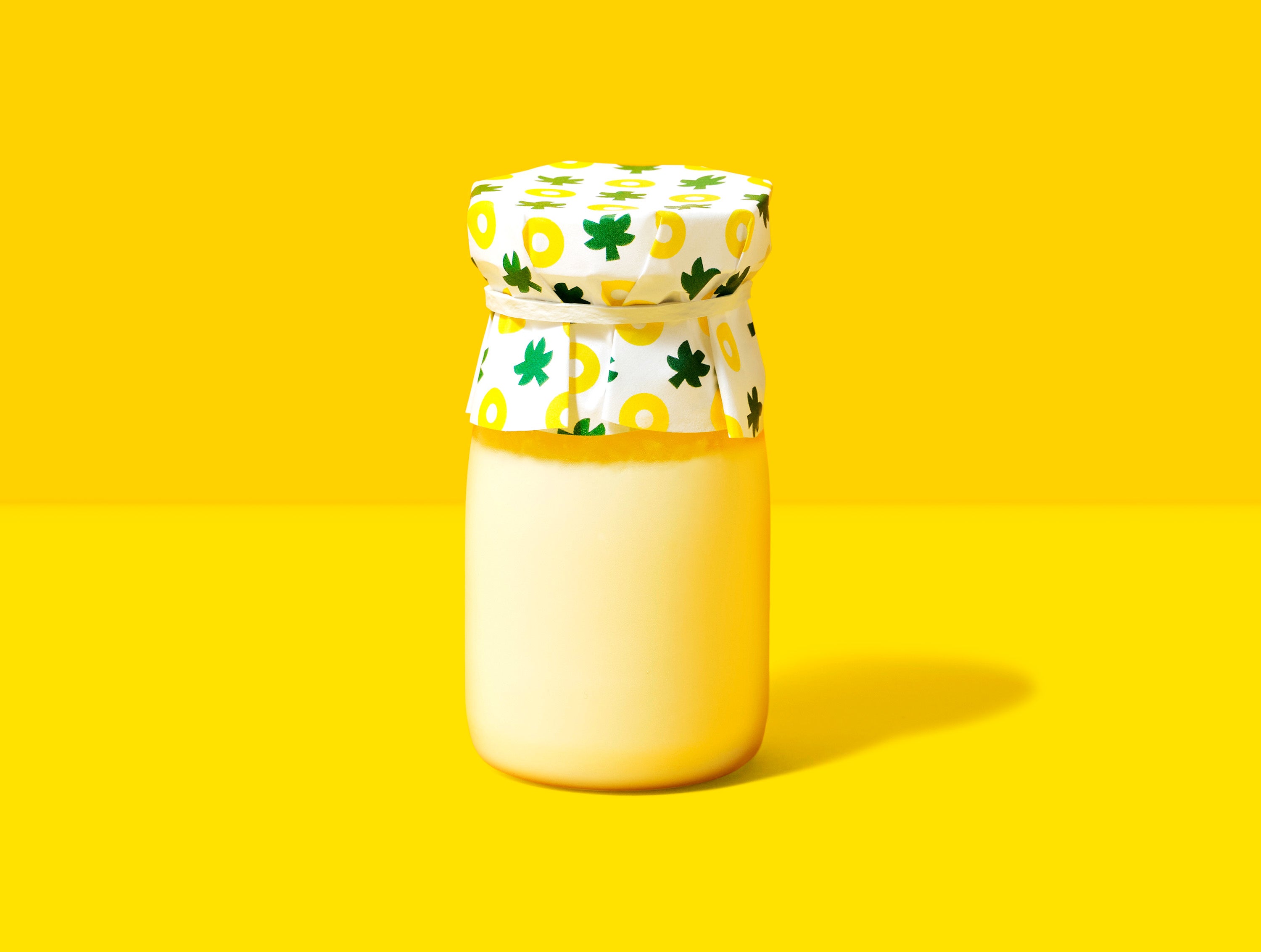 かくし味として沖縄産黒糖を使用した杏仁風味のなめらかであっさり系のミルクプリン。カラメルではなく、「ティダパイン」特有の繊維がアクセントの果肉たっぷりパインソースをかけて2層に仕上げています。
