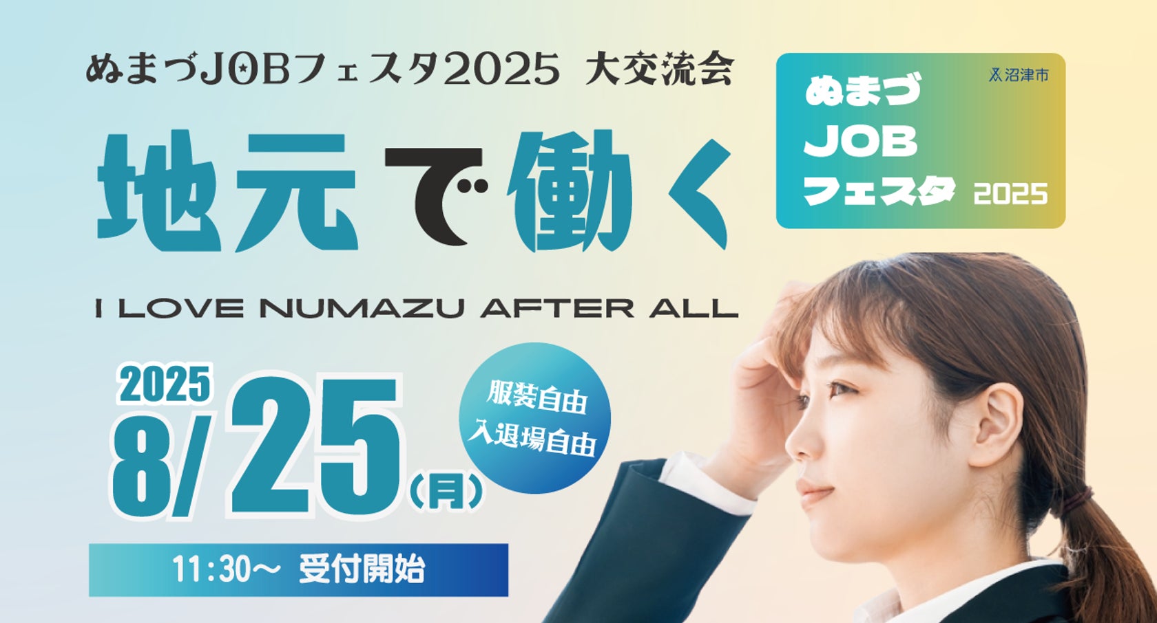 沼津市主催「ぬまづJOBフェスタ 2025 大交流会」は、採用意欲の高い沼津市内に事業所のある優良企業と、学生等の求職者が大集合します。お互いに直接話せる特別な1日。魅力ある企業や人材との出会いの場になります。ぜひ奮ってご参加ください。