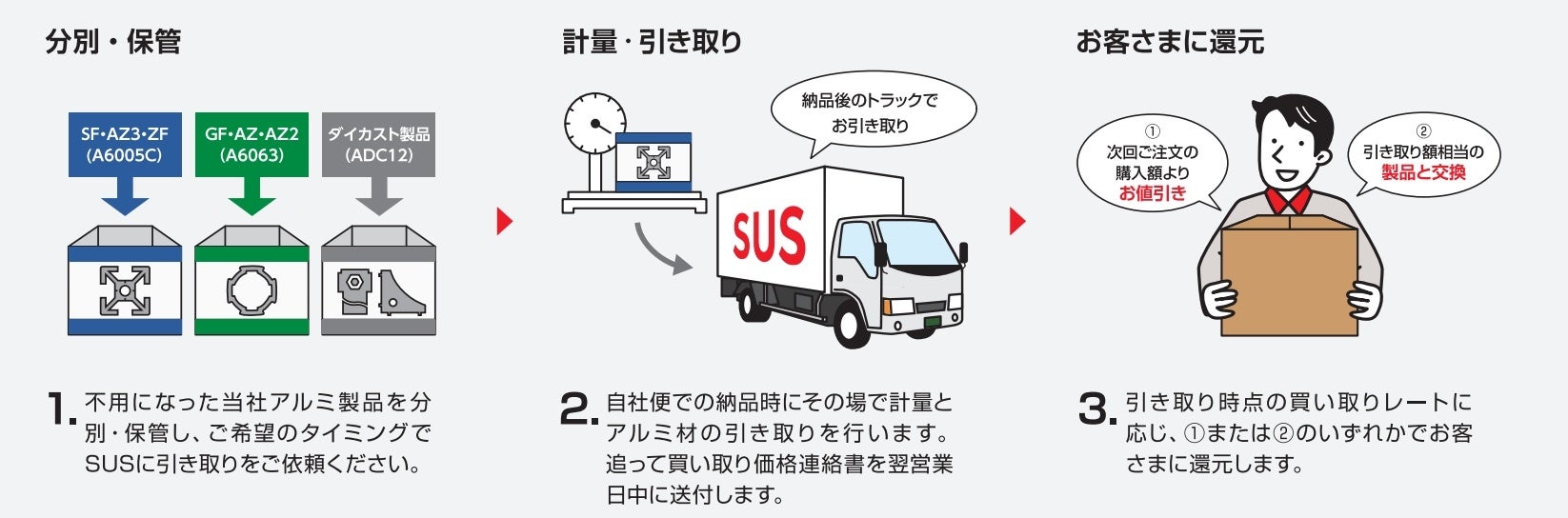 不用になった自社アルミ製品を引き取り、再生へ -自社一貫体制で実現する循環型ものづくり-SUSの「アルミリサイクル便」、10月1日(水)より本格始動!