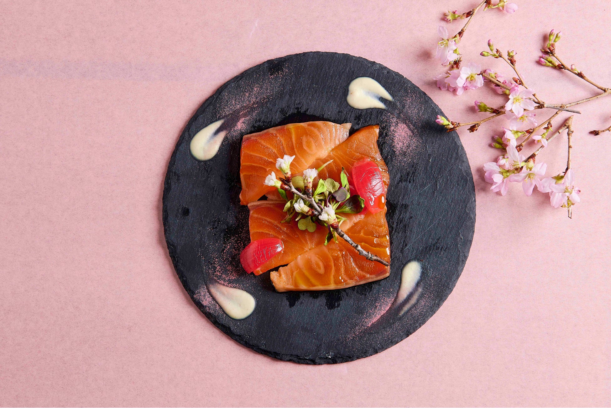 「サーモンのマリネ 桜の香りと根セロリのピューレ~Marinated Salmon Seasonal Style~」……2,420円