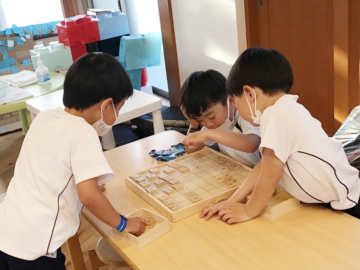 導入から2〜3週間経つと、将棋を指す男の子が増えてきました。この段階では、子ども同士で遊ぶことが中心でした。