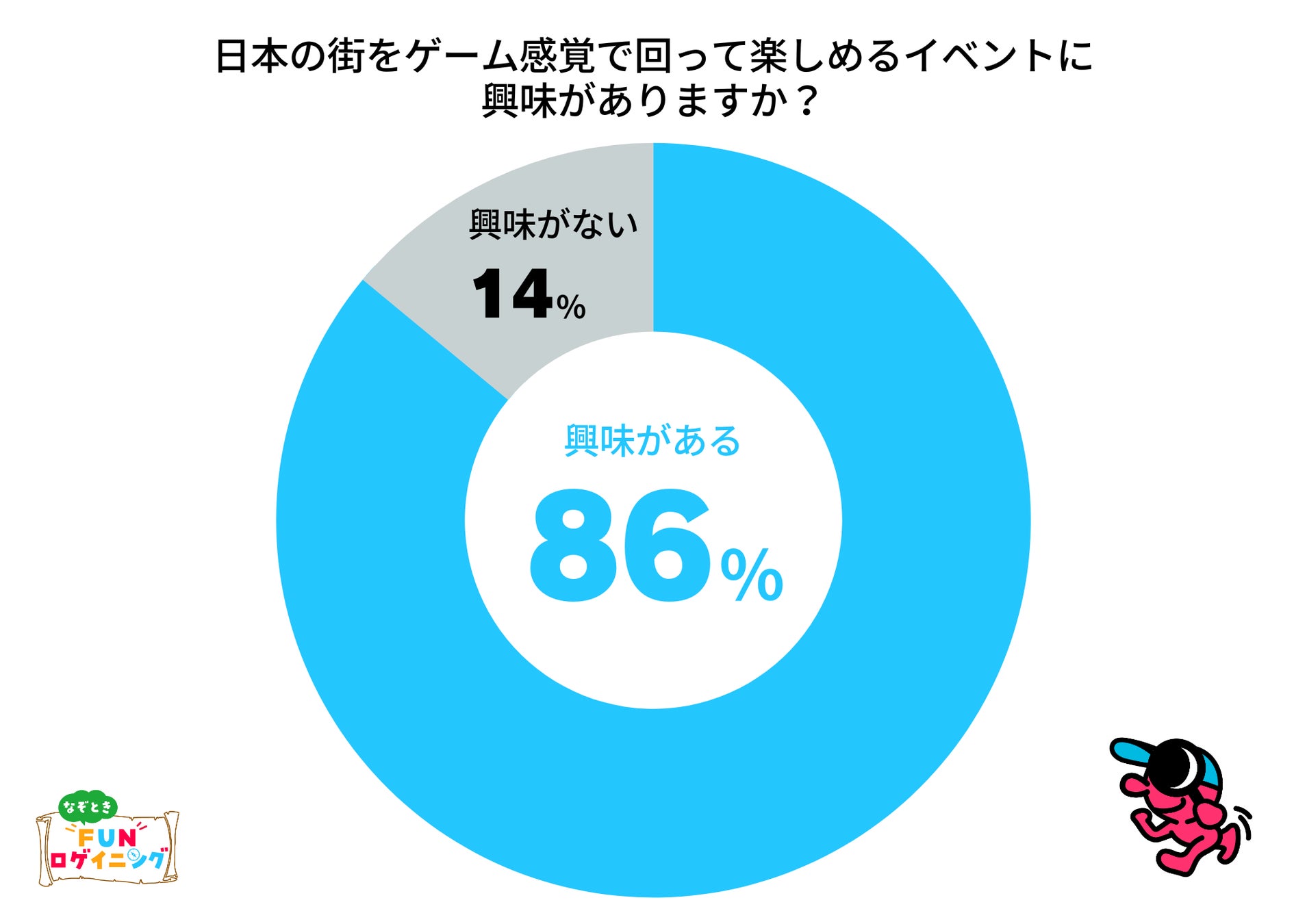 外国国籍の方々50人を対象に行ったアンケートによると、約8割の人が、スタンプラリーや観光マップの理解に言語の問題で困難を感じたことがあると回答しました。また、6割近くの人々がロゲイニングを知っていることが判明しました。