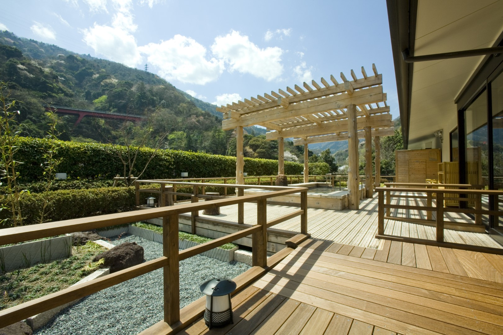 また、屋外テラスの足湯は屋根を撤去し、二子山をはじめとする箱根の山々を望む、より自然を身近に感じられる設えに刷新しています。