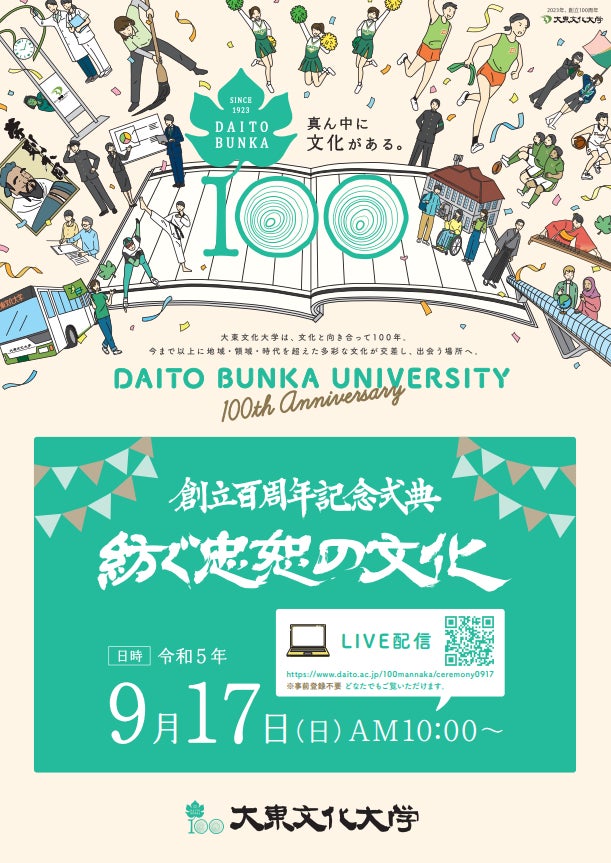 【大東文化大学】9/17に創立100周年記念式典「紡ぐ忠恕(ちゅうじょ)の文化」をオンラインで開催決定!