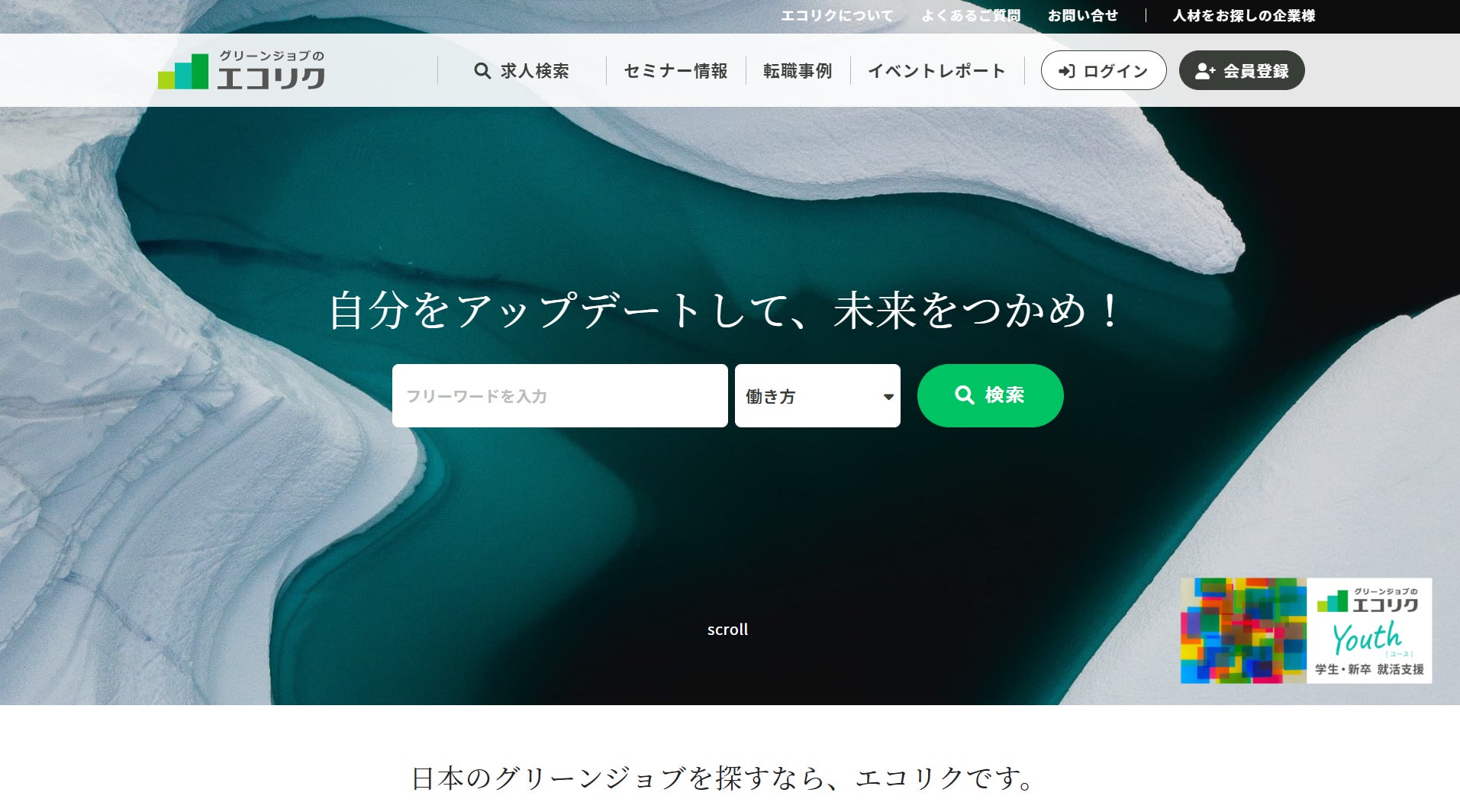 昨今の急激に変化する世界に私たちも驚きながら、今後はさらにディーセントワークを満たす「グリーンジョブ」の時代になると確信し、「グリーンジョブのエコリク」としてサイトを全面リニューアルしました。