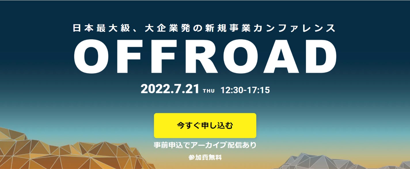 新規事業カンファレンスでは、そんな道なき道『オフロード』を歩む9名の ”開拓者” によるリアルな苦難の乗り越え方を実践的な学びに変えてお届けします。