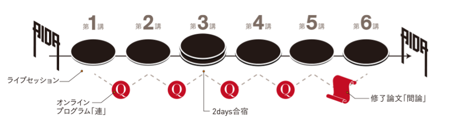 [AIDA]では、毎シーズン「◯◯と◯◯のAIDA」という通しテーマを設け、その元にゲストを招き、「お題」(課題)を折り込みながら思索を深めていきます。座衆は全6回のライブセッションを通して「壊す・肖る・創る」の3段階の変容プロセスを通り、各々の「編集的社会像」を構想します。