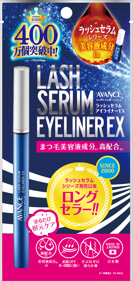 累計出荷数400万個突破「ラッシュセラムシリーズ」の美容液成分※1を高配合※2 !メイクしながらまつ毛をケアするアイライナー「アヴァンセ ラッシュセラムアイライナーEX」