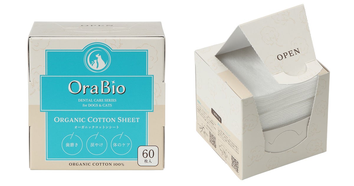 愛犬愛猫の歯磨きシリーズ「OraBio(オーラバイオ)」から、『オーガニックコットンシート』発売。一家に一箱、無農薬栽培100%の歯磨き・涙やけ・体のケア用品。