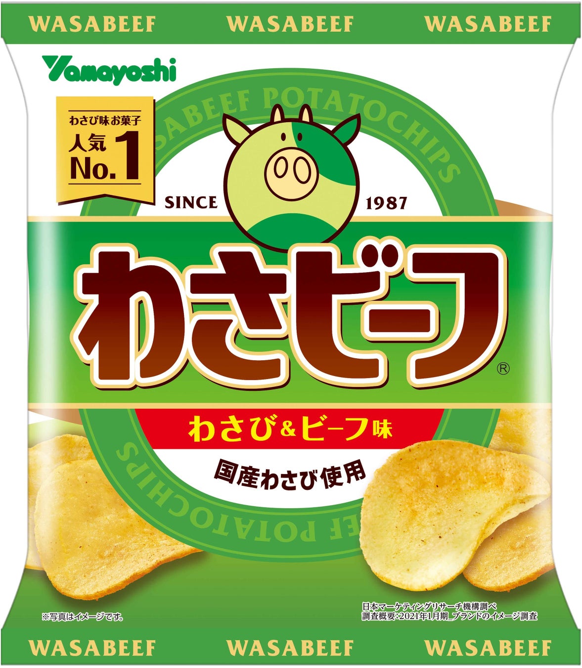 “わさビーフ”の特徴は、大人が好む刺激的なわさびの辛さと、お菓子らしいビーフの組み合わせが癖になる唯一無二のおいしさです。今回のリニューアルでは国産のわさびとビーフの旨みのバランスを見直し、鼻に抜けるわさびの刺激を感じながらもビーフの旨みをより感じやすくすることで、一層おいしく食べ続けられる味わいとなりました。またパッケージではキャラクターを取り入れつつも、時代に合わせたシンプルなデザインに改良。特徴的な緑の色も鮮やかな配色にすることでわさビーフらしさを店頭で訴求いたします。