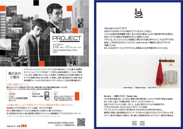代表:佐野に子どもが生まれ、肌トラブルがきっかけとなり2017年にブランドOneLuckを立ち上げました。いろいろな素材を検査機関で調べ、安心で安全な商品にしようと父親目線で素材を選択、エコテックス認証の和紙素材を中心に展開しています。デザインはパタンナーとしてパリ、ミラノコレクションを経験した観点から本質に寄り添ったミニマムなデザイン性を重視し、ご利用される方のLifestyleとEarth Friendlyで機能性に富んだデザインを考慮しています。