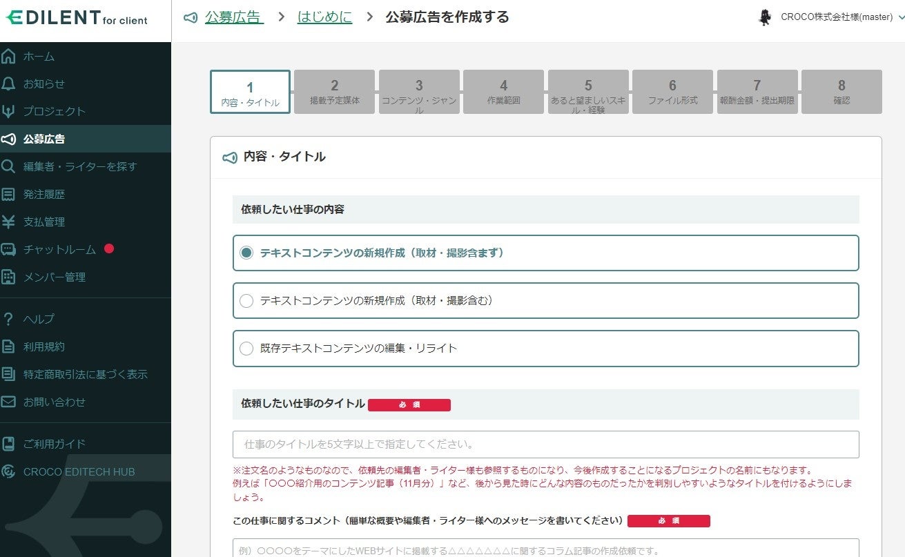 独自の自然言語処理テクノロジーと50万人超のライターネットワークを抱え、コンテンツマーケティングを支援する”EDITECH(EDIT+TECHNOLOGY)”カンパニーのCROCO株式会社は、編集者・ライター専用のお仕事マッチングプラットフォーム「EDILENT(エディレント)」より、5月17日から5月31日まで、期間内であれば回数無制限で手数料が半額になるクーポンを公開いたしました。