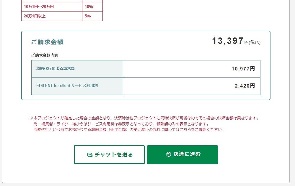 3.編集者・ライターとマッチングし、プロジェクトを成立させたあと、決済画面へ進んでください。