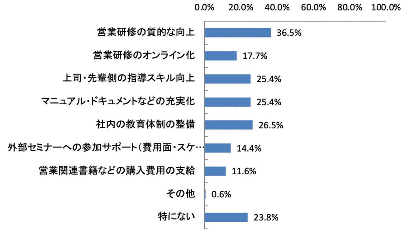- 「営業研修の質的な向上」が最も多い回答となりました。
